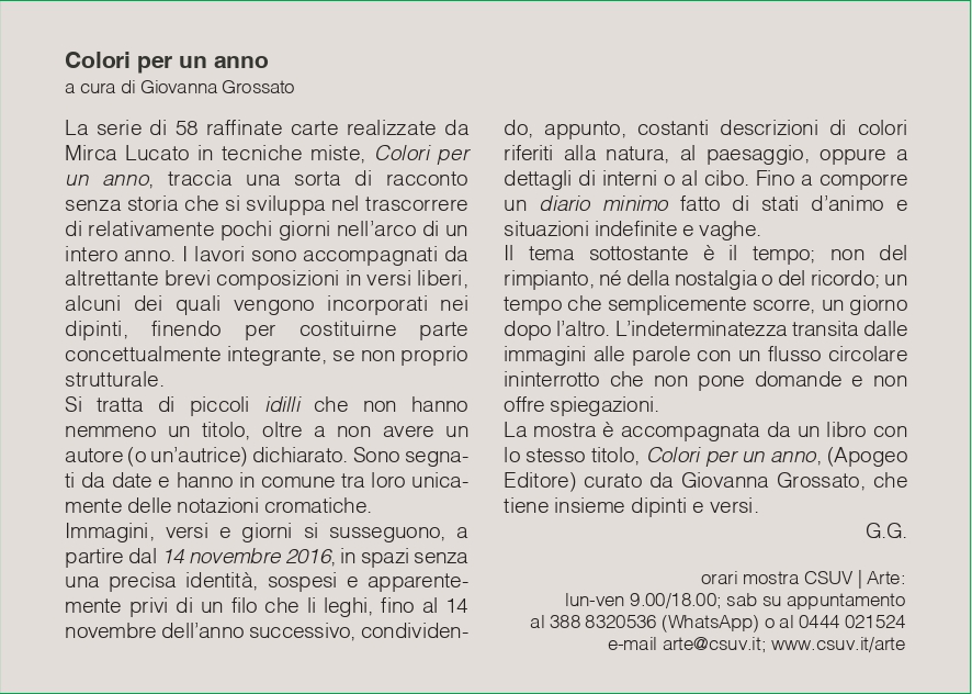 Giovanna Grossato, curatrice della mostra di Mirca Lucato, presenta il libro "Colori per un anno", Apogeo Editore.