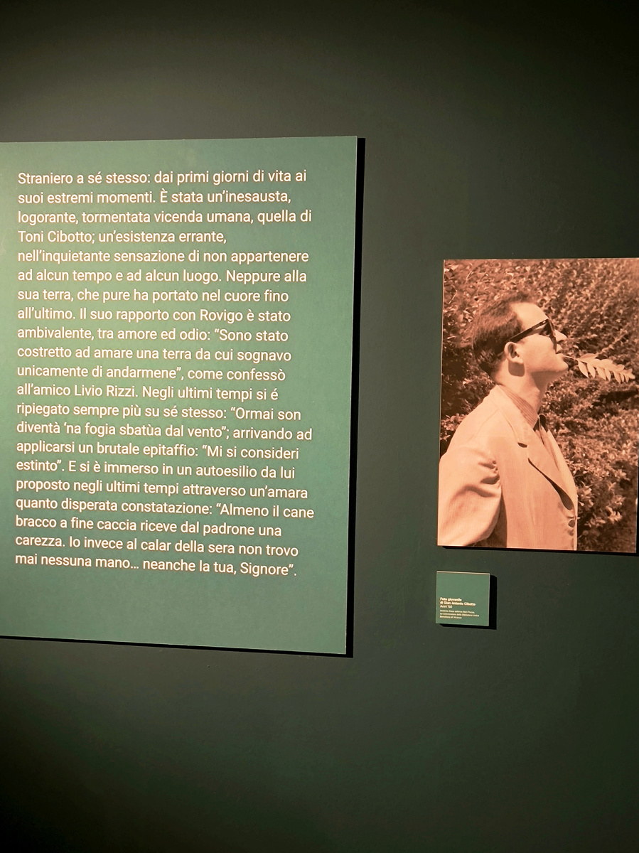 Toni Cibotto è al Roncale di Rovigo nella mostra a lui dedicata nel Centenario della nascita. Sala dopo sala, è lui stesso a raccontarsi e raccontare il suo tempo, tra amore e disincanto, sempre in bilico tra un “paradiso perduto”, quello del Polesine e del Veneto d’un tempo. È una attualità nella quale si sente sempre più fuor d’acqua, tanto da invitare i suoi molti lettori ed estimatori a “consideralo estinto”, già molti anni prima di andarsene.