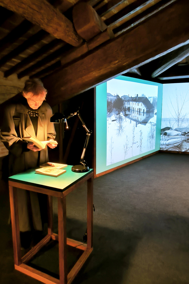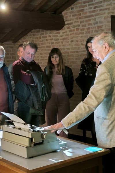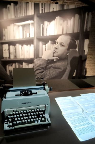 Va subito detto che non si tratta della “solita” mostra su uno scrittore. Certo ci sono i suoi libri, le sue foto, il suo film, le sue macchine da scrivere… ma, nell’originale allestimento creato da Arcadia Arte, a guidare il visitatore è proprio lui, Toni, con le sue riflessioni, i suoi aforismi, i suoi ricordi. Sono spezzoni tratti da “Il viaggio di Toni”, il docufilm girato in quel mitico treno, “la Vacca mora”, tra Rovigo e Chioggia, che ricalca il titolo di uno dei suoi libri. Ad ogni “fermata”, ricordi biografici, la memoria del padre e di una infanzia isolata, lui unico maschio in un collegio femminile, l’oppressione della solitudine, poi la scoperta della libertà che coincide con la frequentazione di Legge all’Università di Padova. Una laurea che non metterà mai a frutto, preferendo il giornalismo e la scrittura. L’esordio difficile con “La coda del parroco” che finisce sotto la scure della Santo Uffizio, giudizio drammatico per lui che era il figlio di un deputato democristiano soprannominato il “Vicevescovo” di Rovigo. Poi la Grande Alluvione, che vive in prima persona e che racconta in un suo libro.